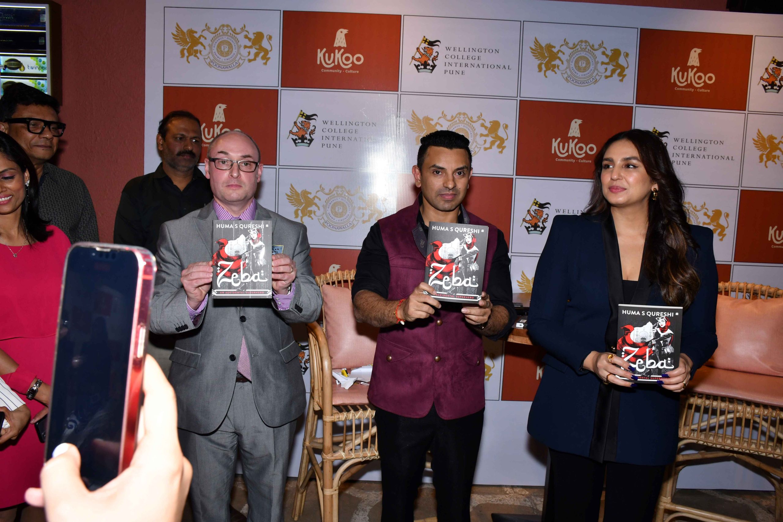 Bollywood actor Huma Qureshi launched her book Zeba- An Accidental Superhero at the newly opened Kukoo restaurant in Kalyani Nagar, Pune. The event was hosted by Tehseen Poonawalla- an Industrialist, Political Analyst and Philanthropist. Also present at the event was Dr. Murray Tod, Founding Master of the newly opened premium IB school in Pune, Wellington College International Pune.