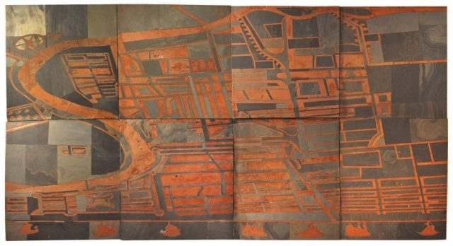 The show features artworks and studies from Pravat’s practice spanning from 2016 to 2021 that includes sculptural installations, paintings, drawings, collage works and prints. M. Pravat’s art practice utilises materials that draw on lived experiences of the built environment. His works evoke the disintegration of cityscapes where blue-prints, maps, architecture and geological land mass collapse into one another